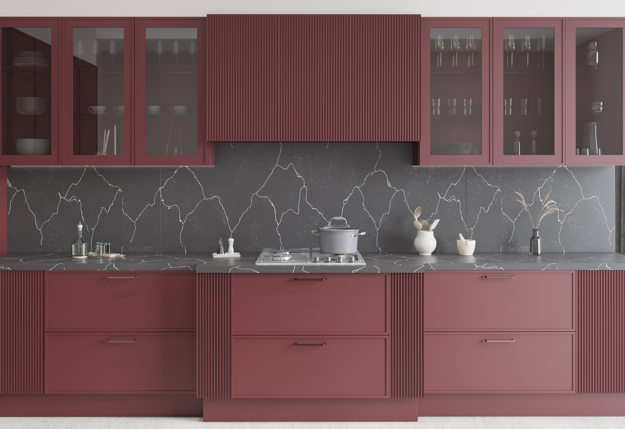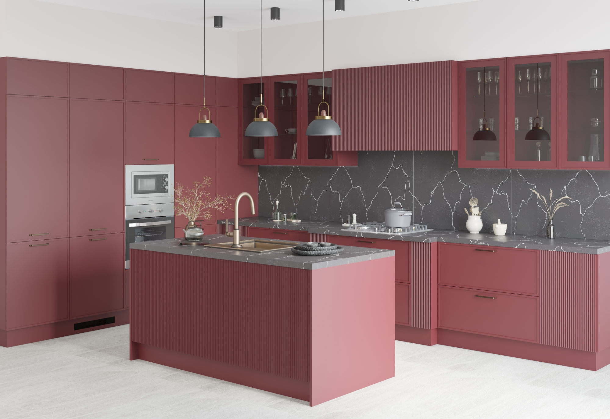 Хотите разнообразить свою жизнь и добавить неординарных красок? Кухня Шеф Локи создана для Вас. Сочный и глубокий оттенок бургунди, рифленые фасады в современном исполнении, продуманная эргономика и качественное наполнение, все это подарит живую атмосферу уюта и счастья у Вас дома.